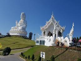 we will take you to WatHuaiPla Kang. There is a large beautiful building in the form of a Guanyin statue here. There are 25 floors inside this Guanyin statue. Visitors can use the elevator. You can also see the scenery on the 25th floor as well as the beautiful landscape of Chiang Rai. There is a very beautiful 9-storey pagoda.