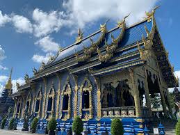 At last, we will go to Wat Rong Suea Ten (A Blue Temple with Thai sculptures which is painted with blue color).