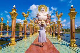 | Include/Exclude | Include Transfer round trip from hotel English-speaking tour guide Any admission fee Exclude Personal expense Souvenir Childs Policy: Children under 3 years free Children 3-11 years are 75% Sightseeing price, Children over 12 years are adult rate Day trips are not recommended for children and they will be charged at full fare if special authorization is granted. Note Complimentary Rate Tour Products Only What to Brink Camera Swimming suite Sandal Set of dry clothes Insect repellant Sunscreen Hat Sunglasses Cash for personal expense What To Expect Highlights of this tour, discover two notable Samui temples: Big Buddha and Wat Khunaram, Hike to the panoramic Lad Koh Viewpoint, refresh yourself in a pristine natural environment at Na Mueang Waterfall, and souvenirs shopping at Nathon, a charming vintage town. Around Samui Island Tour gives you a quick overview of the island’s most notable attractions. Visit the Temple of Big Buddha or Wat Phra Yai, one of the most famous Samui landmarks before enjoying the splendid panoramic view of Thong Takhian, Chaweng Beach, and the Gulf of Thailand from the viewpoint at Lad Koh. You will then Continue to Lamai and stop at the bizarre stone formation of Grandfather’s Grandmother’s Rocks (Hin Ta and Hin Yai). You’ll then head to Khunaram Temple, where the mummified body of a Buddhist monk can be seen. The next attraction is Na Mueang Waterfall for a refreshing dip in the natural pool (season depending), before continuing to Nathon Town for some shopping.